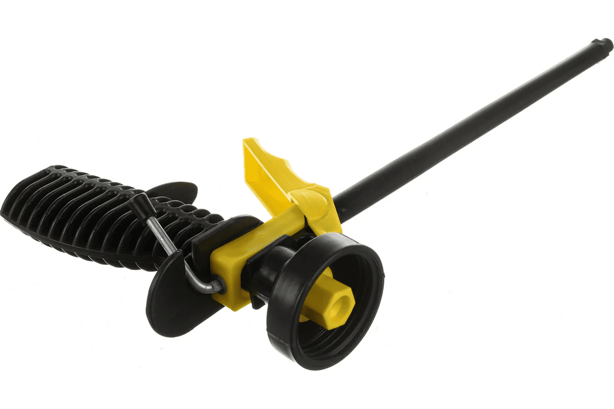 Корпус изготовлен из стойкого к износу пластика, который не боится загрязнений и коррозии. Эргономичная рукоятка удобно фиксируется в руке, обеспечивая комфорт при работе, а конструкция способствует равномерному распределению пены по поверхности. Простой механический привод делает инструмент надёжным в эксплуатации, а пластиковый ствол продлевает срок службы и облегчает уход.