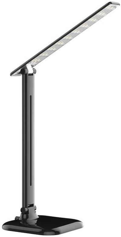 Настольный светильник UF-716 Ultraflash работает от стандартной электросети. Модель значительно улучшает обзор на письменном или компьютерном столе, поэтому оптимально подойдет для выполнения домашних заданий, чтения книг и журналов. Конструкция из прочного, качественного пластика оснащена устойчивой платформой и широкой штангой, к которой под наклоном крепится плафон. В качестве источника света используются LED-лампы, характеризующиеся безопасностью для зрения, минимальным потреблением электроэнергии и продолжительным сроком эксплуатации — более 30 тыс. ч. Для включения устройства и выбора одного из трех режимов яркости предусмотрена сенсорная кнопка на основании.