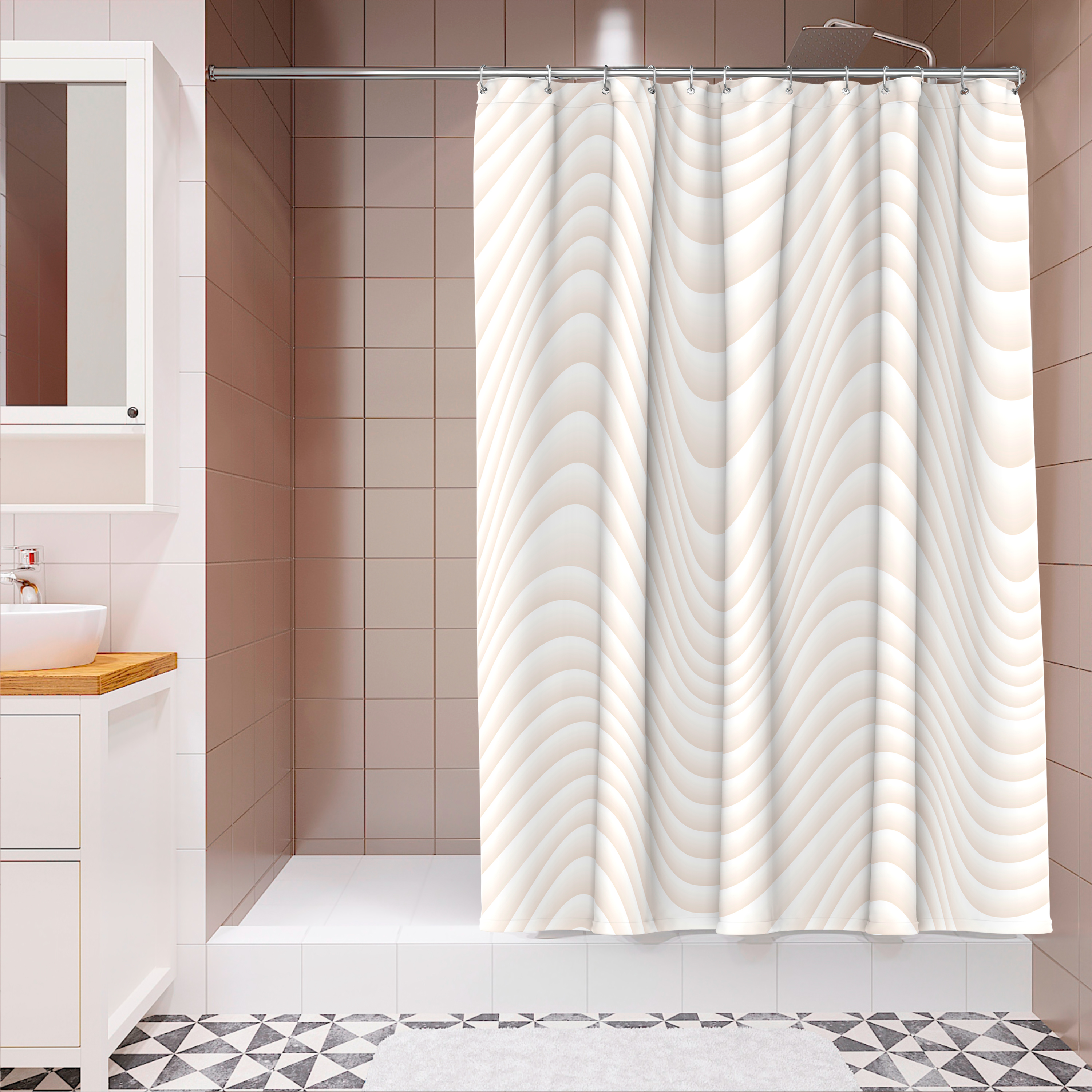 Шторка SPLINE имеет уникальный дизайн, который вдохновлен волнами и создает атмосферу спокойствия и релаксации в ванной комнате. Принт в виде волн, выполненный в натуральных песочных оттенках, добавляет нотку аутентичности и природной красоты в ваш интерьер.