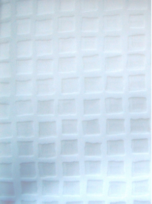 Дизайн данной шторы представляет собой узор из геометрических квадратов, который придает интерьеру особый характер.