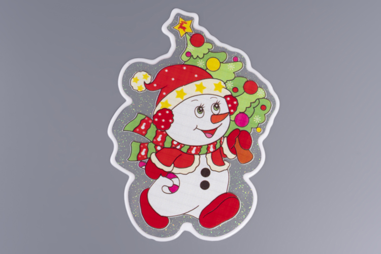 Наклейка новогодняя Снеговик с елкой 20х15см